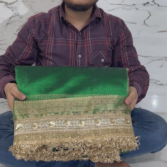 Banarasi sarees are traditional Indian sarees that are known for their luxurious fabric and intricate designs. They are made in the city of Varanasi, also known as Banaras, and are typically made from fine silk. The sarees can feature elaborate patterns woven with gold or silver threads, including floral designs, paisleys, and scenes from Hindu mythology. The craftsmanship of Banarasi sarees is considered to be some of the finest in the world, with many sarees taking weeks or even months to produce. Banarasi sarees are often considered to be a symbol of wealth and prestige, and are traditionally worn on special occasions such as weddings, festivals, and religious ceremonies. Their timeless elegance and intricate beauty make them a popular choice for both Indian and international audiences.