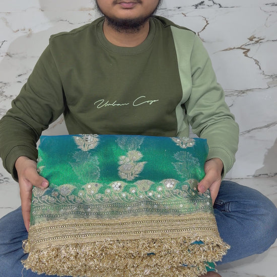 Banarasi sarees are traditional Indian sarees that are known for their luxurious fabric and intricate designs. They are made in the city of Varanasi, also known as Banaras, and are typically made from fine silk. The sarees can feature elaborate patterns woven with gold or silver threads, including floral designs, paisleys, and scenes from Hindu mythology. The craftsmanship of Banarasi sarees is considered to be some of the finest in the world, with many sarees taking weeks or even months to produce. Banarasi sarees are often considered to be a symbol of wealth and prestige, and are traditionally worn on special occasions such as weddings, festivals, and religious ceremonies. Their timeless elegance and intricate beauty make them a popular choice for both Indian and international audiences.
